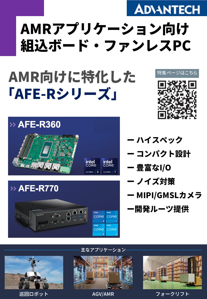 AMR(自律走行運搬ロボット)に特化した組込みボード「AFE-R360」とファンレスPC「AFE-R770 」を紹介したカタログです。AMRアプリケーション向けに設計されたAFE-Rシリーズ...