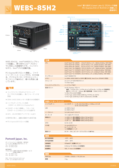 WEBS-85H2は、Intel® W480Eチップセットを搭載し、第10世代 Core™ プロセッサに対応した産業用PCです。コンパクトながら、Xeon® CPUも搭載可能。PCI-Expressを3スロット搭載し...