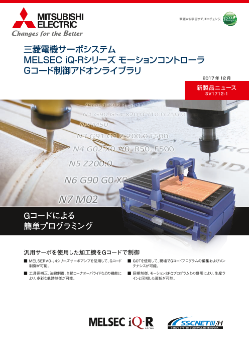 ■MELSERVO-J4シリーズサーボアンプを使用して、Gコード制御が可能。■工具径補正、法線制御、自動コーナオーバライドなどの機能により、多彩な軌跡制御が可能。■GOTを使用し...