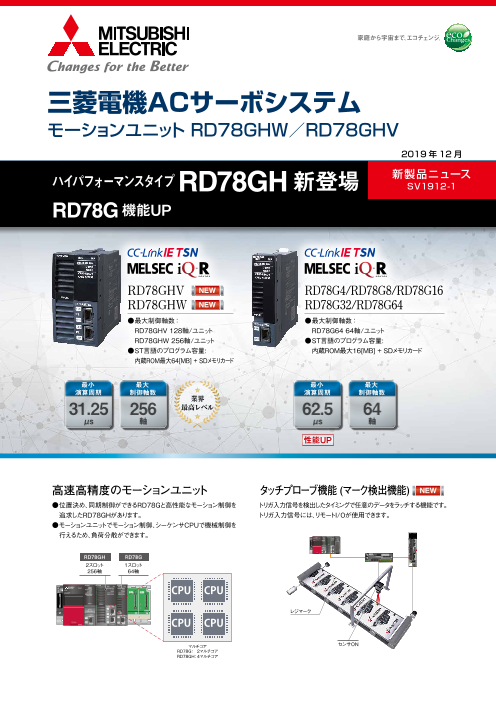 ◆高速高精度のモーションユニット◆タッチプローブ機能 (マーク検出機能) 【RD78GHV/RD78GHW】◆最大制御軸数 RD78GHV 128軸/ユニット RD78GHW 256軸/ユニット◆...