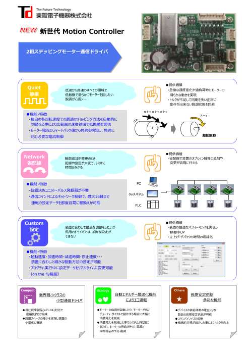 超低速域でも低振動で滑らかにモータを動かせます。位置決めユニットやパルス発振器が不要で、PC等上位からのコマンドにより制御が可能です。また、同製品をデイジーチ...