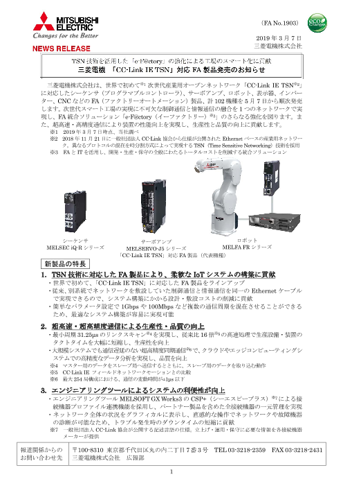 三菱電機株式会社は、世界で初めて1次世代産業用オープンネットワーク「CC-LinkIETSN」に対応したシーケンサ(プログラマブルコントローラ)、サーボアンプ、ロボット、表示器、...