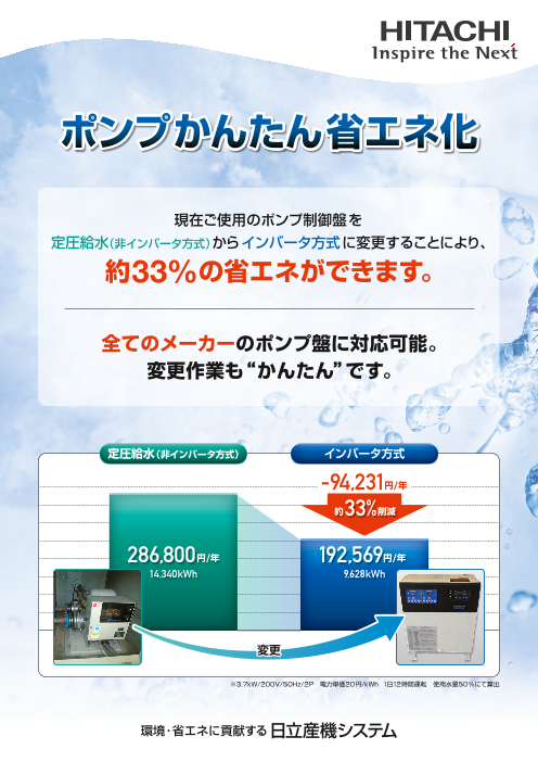 全てのメーカーのポンプ盤に対応可能。変更作業も"かんたん"です。【制御盤取り替えによる3つのメリット】◆ポンプごとにインバータを配置、常に可変速運転が可能になりま...