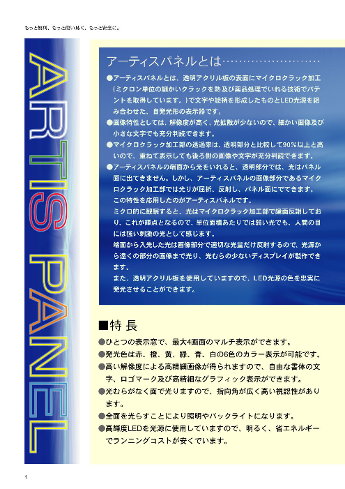 ◆発光色は、赤・橙・黄・緑・青・白の6色のカラー表示が可能です。◆高い解像度による高精細画像が得られますので、自由な書体の文字、ロゴマーク及び高精細なフラフィックが表...