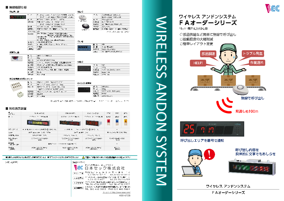 飲食店などで、食事を注文する際に使用する、呼出しシステムです、工場現場においても、広くご活用頂いております、卓上送信機を押し、「設備停止」「資材調達」など、トラブル時に責任者呼出、改善のスピードアップを図り、無駄な時間の削減に、...