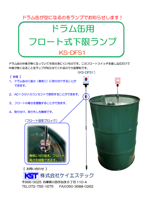 ドラム缶の中身が無くなっていても気付きにくいものです。このフロートスイッチを差し込むだけで中身が無くなることをランプが知らせてくれるので大変便利です。【 特徴 】...