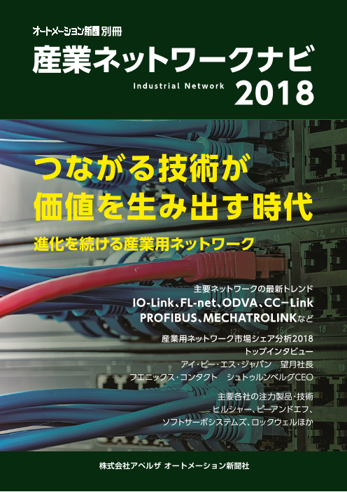 ものづくりを応援する業界紙・オートメーション新聞の別冊「産業ネットワークナビ2018」は、産業ネットワークの最新動向をまとめたムック本です。産業用ネットワーク市場シェ...