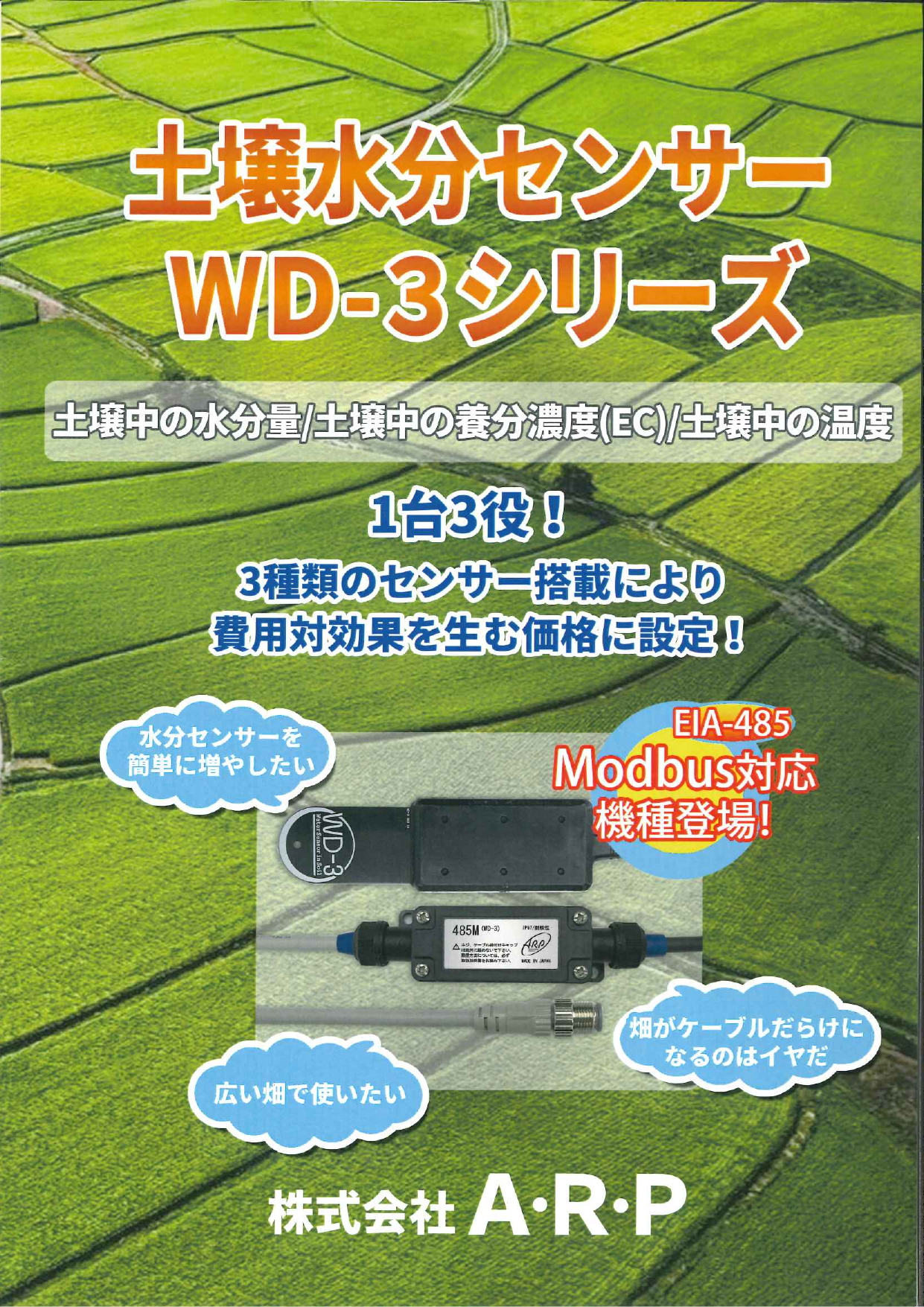 ・1台3役!3種類のセンサー搭載により費用対効果を生む価格に設定!・水分センサーを簡単に増やしたい・広い畑で使いたい・畑がケーブルだらけになるのはイヤだ・EIA-48...