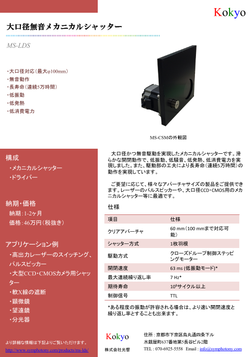 大口径かつ無音駆動を実現したメカニカルシャッターです