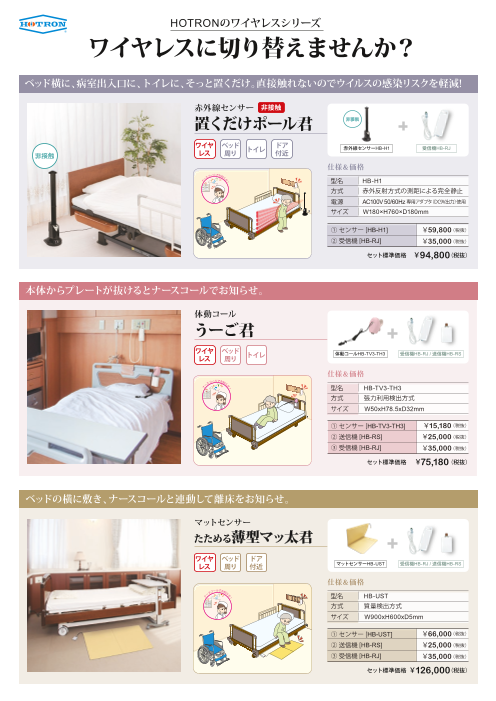 高齢化に伴い、看護・介護現場の「ヒヤリ・ハット」事例はますます増加しています。ホトロンの看護・介護用センサーが、多発する転倒・転落や徘徊による事故を未然に防ぎます。...