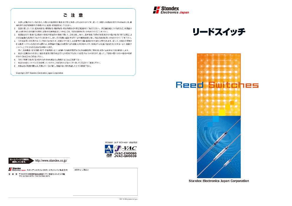 リードスイッチ国内シェアNo.1 スタンデックス エレクトロニクス ジャパン(旧 沖センサデバイス)のリードスイッチ総合カタログです。