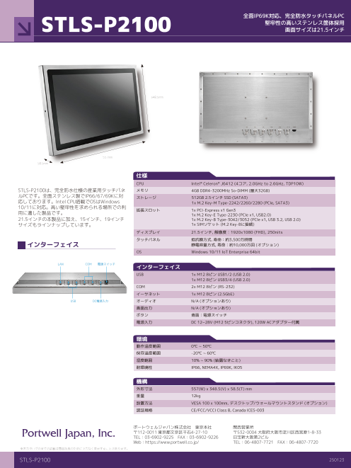 STLS-P2100は、完全防水仕様の産業用タッチパネルPCです。全面ステンレス製でIP66/67/69Kに対応しております。Intel CPU搭載でOSはWindows10/11に対応。高い堅牢性を求められ...