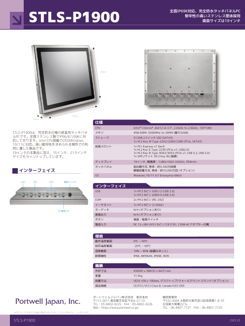 STLS-P1900は、完全防水仕様の産業用タッチパネルPCです。全面ステンレス製でIP66/67/69Kに対応しております。Intel CPU搭載でOSはWindows10/11に対応。高い堅牢性を求められ...