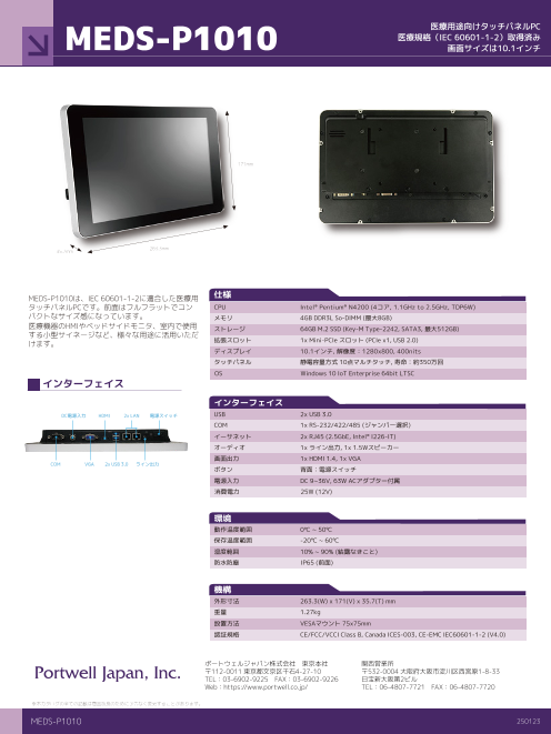 MEDS-P1010は、IEC 60601-1-2に適合した医療用タッチパネルPCです。前面はフルフラットでコンパクトなサイズ感になっています。医療機器のHMIやベッドサイドモニタ、室内で...