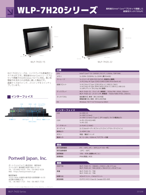 WLP-7H20シリーズは、ハイスペックな産業用タッチパネルPCです。高性能なIntel Coreシリーズプロセッサ搭載でOSはWindows 10/11に対応。高い処理能力を求められる用途に適した...