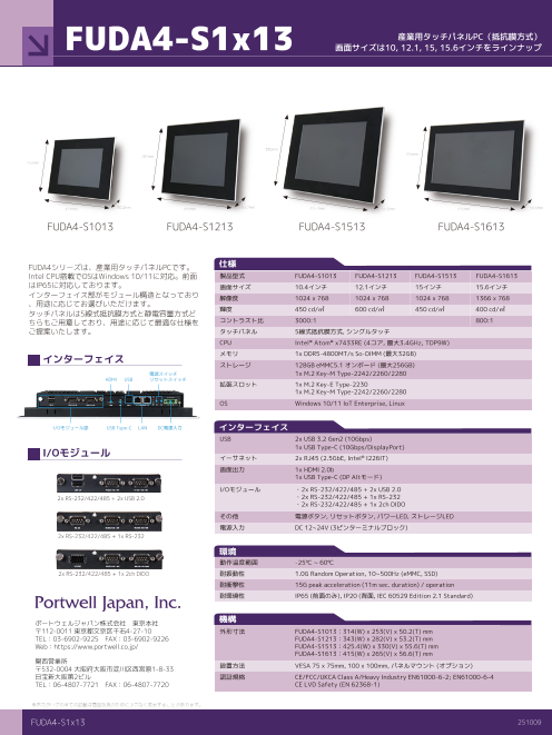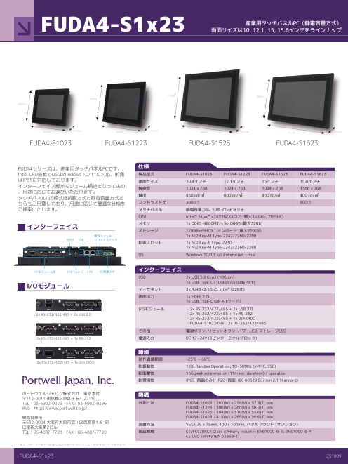 FUDA4シリーズは、産業用タッチパネルPCです。画面サイズは10, 12.1, 15, 15.6インチをラインナップIntel CPU搭載でOSはWindows 10/11に対応。前面はIP65に対応しております。...