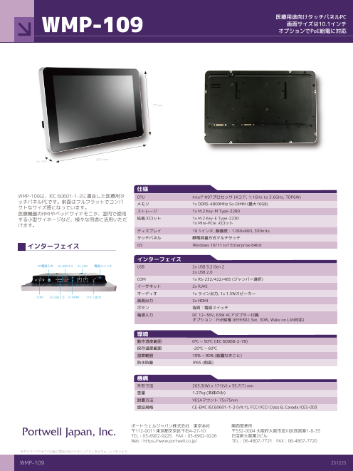 WMP-109は、IEC 60601-1-2に適合した医療用タッチパネルPCです。前面はフルフラットでコンパクトなサイズ感になっています。医療機器のHMIやベッドサイドモニタ、室内で使用...