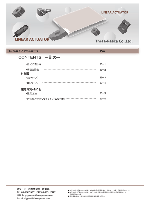 ◆掲載内容・特長・呼び番号・基本仕様・モータ仕様・推力-速度線図・寸法諸元・推奨ドライバ・ドライバ結線図・取扱い、使用上の注意事項