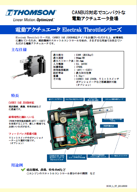 ・CANBUS SAE J1939対応タイプあり(オプション)・耐環境性に優れる(IP69K対応、使用温度-40~125℃など)・リミットスイッチ、ポテンショメータなどのフィードバック搭載...