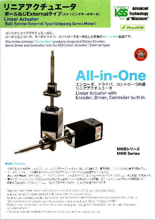 ・コンパクトリニアアクチュエータに、ロータリエンコーダ、サーボドライバ、コントローラを一体化した究極のAll-in-One製品です。・精度等級Ct7の転造ボールねじに、ステッピ...