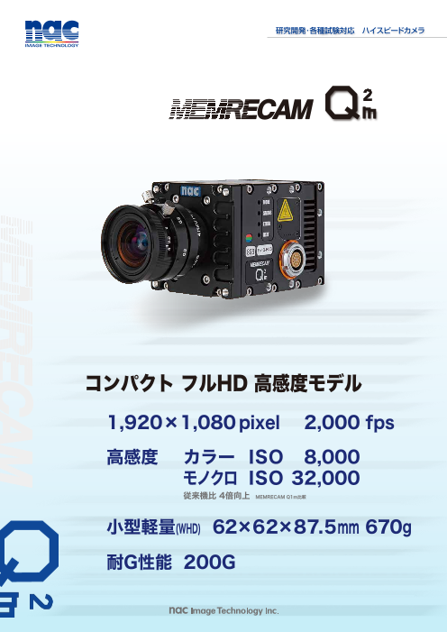 62×62×65mmの手のひらサイズをさらにひとまわり小さくした手軽に運用できる一体型ハイスピードカメラです。小型・軽量設計で、これまで設置が困難であったカメラレイアウトをはじめ、顕微鏡下や拡大光学系と組み合わせての撮影も容易となりました。※Q1mは2020年10...