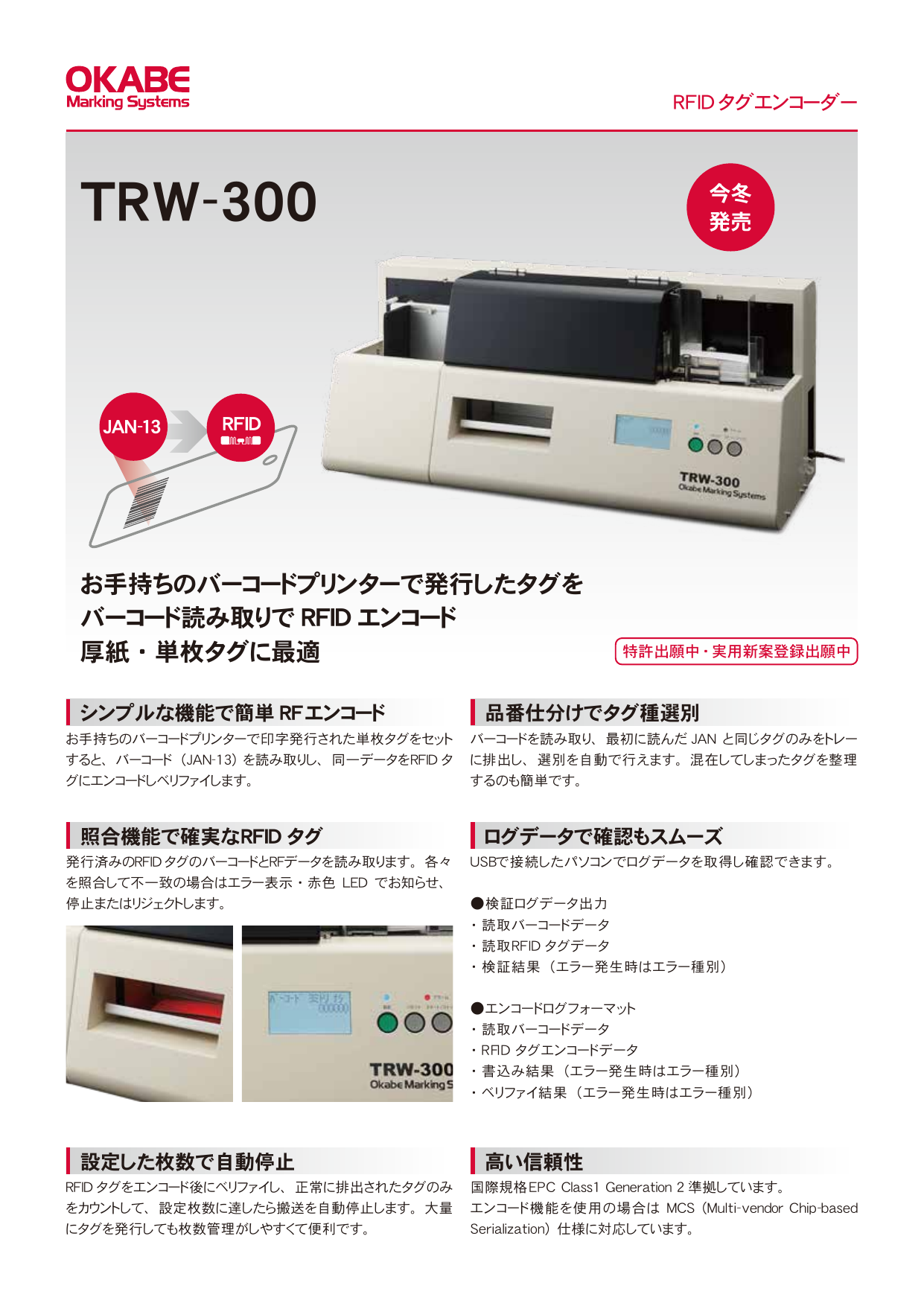 RFIDタグエンコーダー TRW-300 カタログのご案内です。