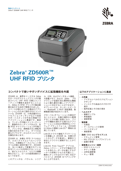 ZD500Rは簡単な操作でRFIDラベルの印刷とエンコードができるデスクトップRFIDプリン...