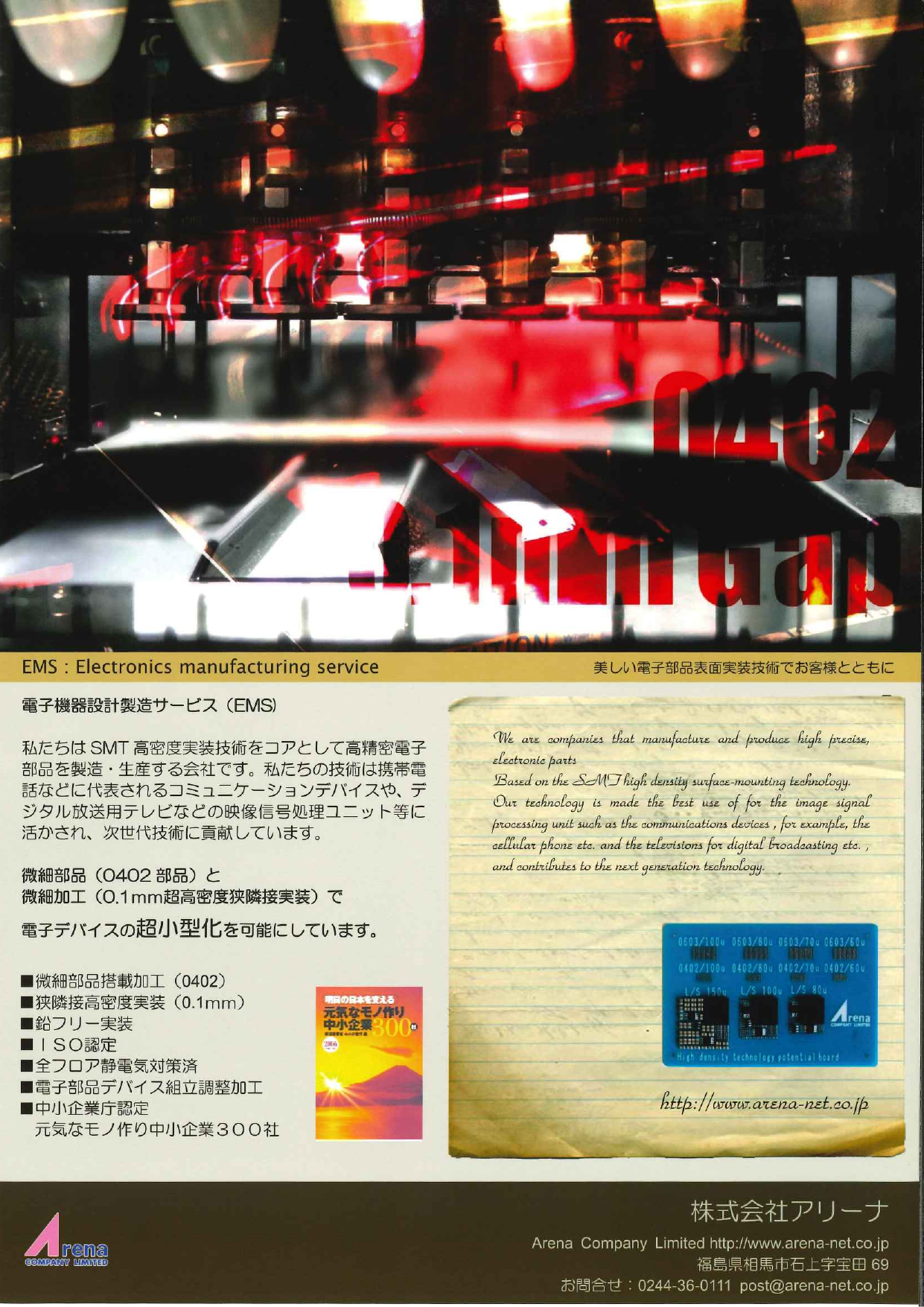 電子機器設計製造サービス(EMS) の 株式会社アリーナ カタログのご案内です。