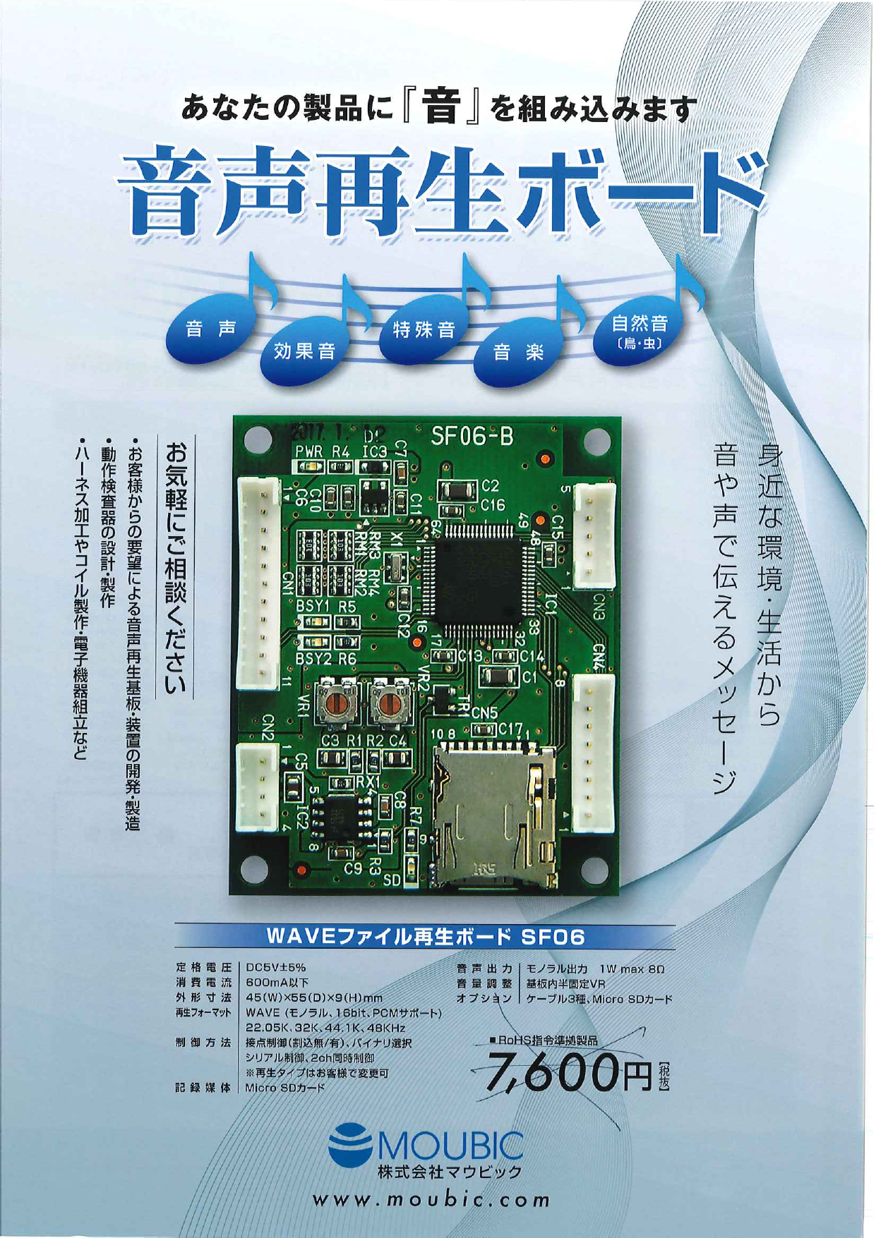 ・WAVEファイル再生ボード SF06・USBメモリ対応音声再生ボード USB04-B・ワンチップ高音質音声IC・再生ボード 簡単なトランジスタドライブによるスピーカ駆動が可能