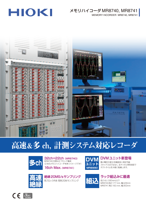 MR8740/MR8741は、高速・絶縁/多chの計測システムレコーダ。対応ユニットに24bit高分解能のDVMユニット「MR8990」が追加され、スキャナを介さずに高速高精度な測定が可能と...
