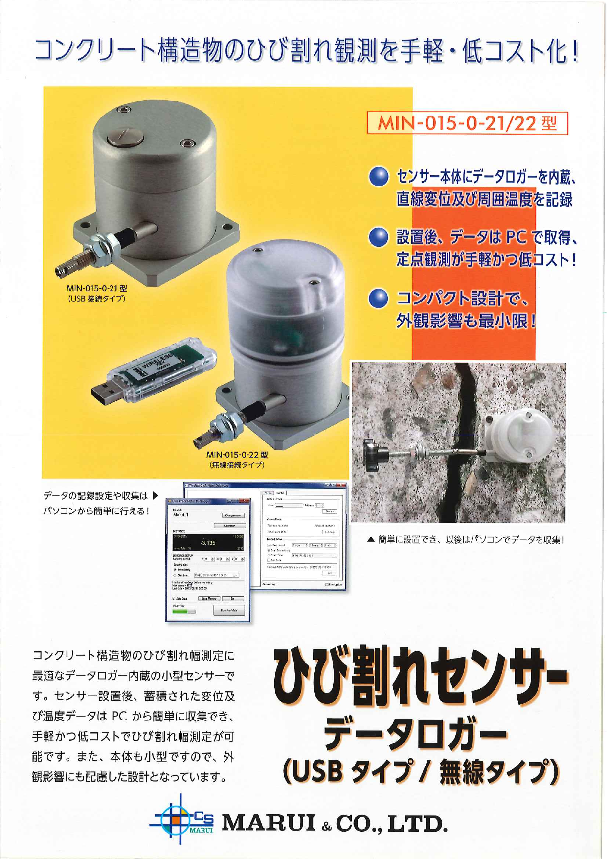 ビルやトンネル・橋梁などのコンクリート構造物では、想定外の荷重や地盤の変位などでひびわれや目地の開口が広がったりすることがあり、維持管理や安定性評価のため、ひび割れ...