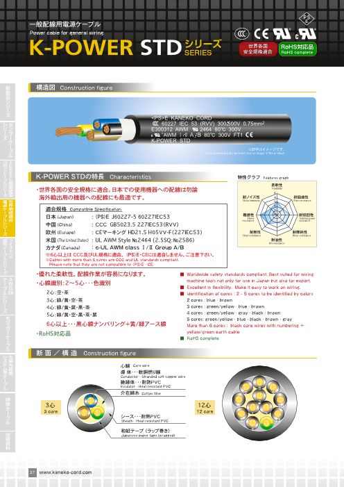 世界各国の安全規格に適合。日本での使用機器への配線は勿論海外輸出用の機器への配線にも最適です。◆適合規格・日本・中国・欧州・米国・カナダ◆優れた柔軟性...