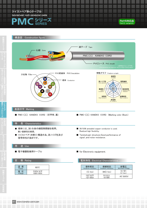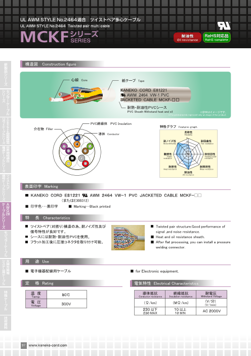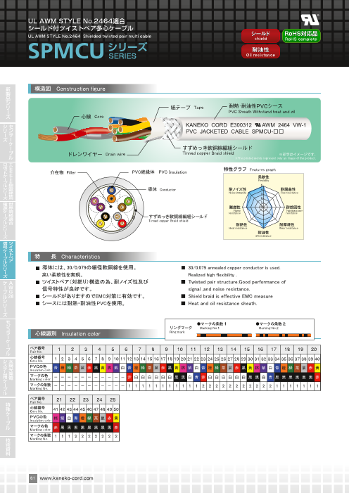 内部配線用や可動用など様々な種類のツイストペアケーブルの製品カタログです。UL対応品や、リスティング規格(CL2,CL3)対応品、細径化したケーブルなどご使用用途に合わせ...