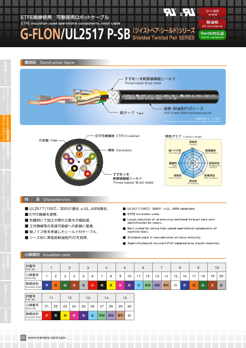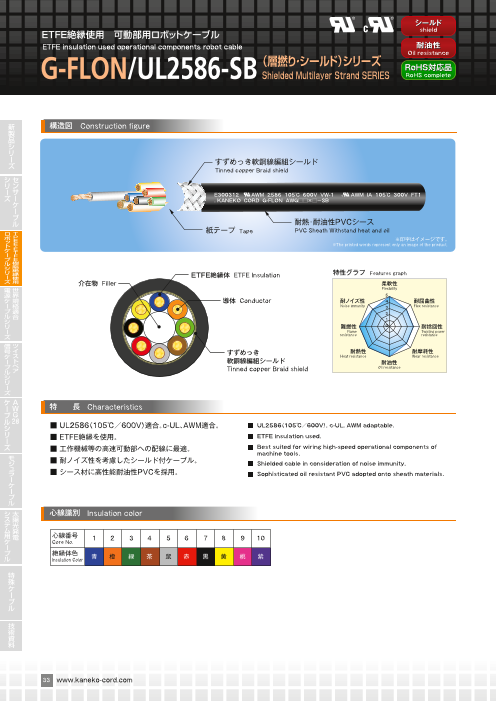 ◆UL2586(105°C/600V)適合。c-UL、AWM適合。◆ETFE絶縁を使用。◆耐ノイズ性を考慮したシールド付ケーブル。◆シース材に高性能耐油性PVCを採用。◆詳細はカタログを...