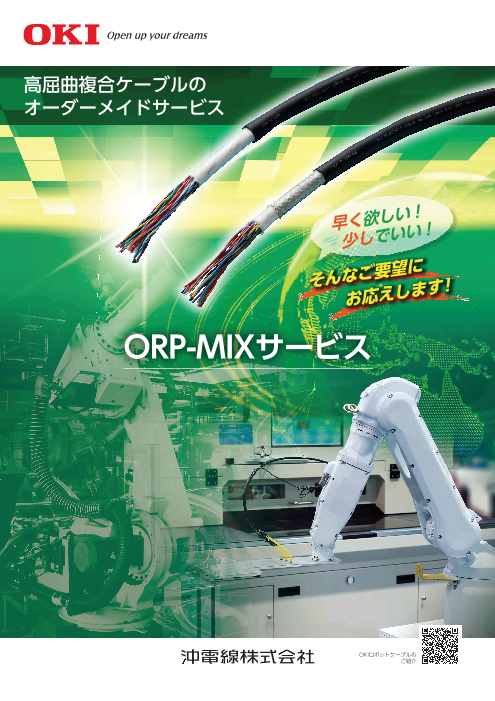 沖電線の高屈曲ロボットケーブル「ORPケーブル・シリーズ」をベースとした高屈曲複合ケーブルのオーダーメイドサービスです。お客様がご指定するケーブル構成を沖電線の標準仕様...