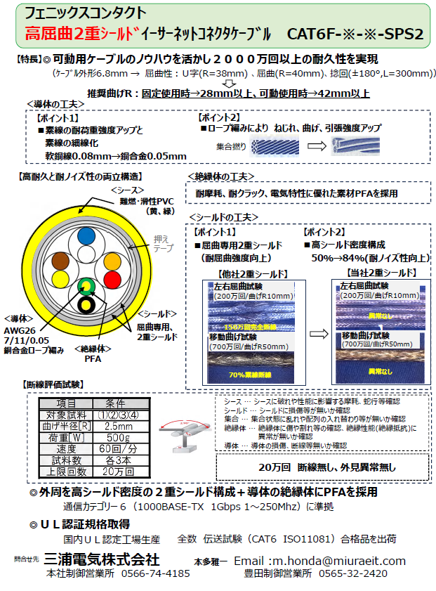 可動用ケーブルのノウハウを活かし2000万回以上の耐久性を実現