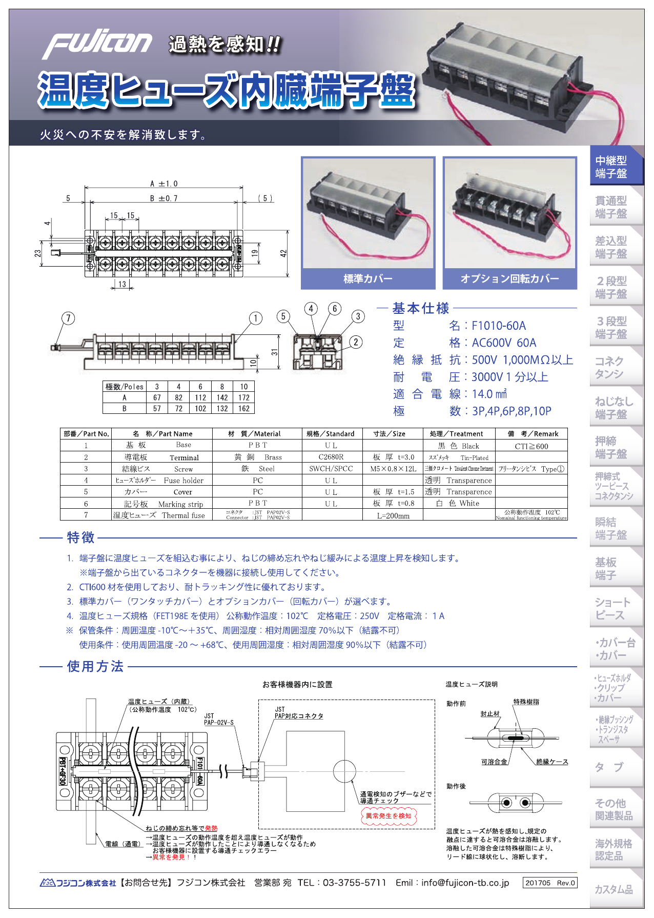 端子盤に温度ヒューズを組み込む事により、ねじの締め忘れやねじの緩みによる温度上昇を検知します。※端子盤から出ているコネクターを機器に接続し使用してください。