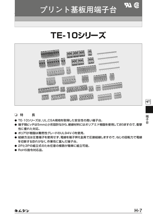 ◆端子間ピッチは5mmと小形設計ながら、絶縁材料にはポリアミド樹脂を使用しておりますので、衝撃性に優れた対応。◆ポリアミド樹脂は難燃性グレードのUL94V-0を使用。◆結線方...