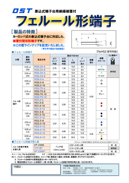 【掲載内容】◆差込式端子台用絶縁被覆付 フェルール形端子 ヨーロッパ式の差込式端子台に対応した、被覆付筒状形端子です。 この度ラインナップを拡充いたしました。 ...