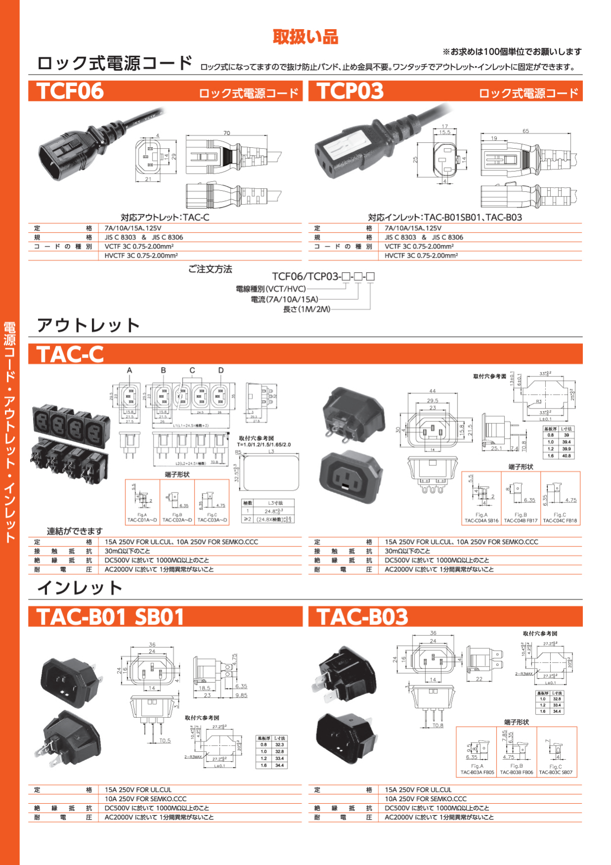 【ロック式電源コード各種】鉄道用及び汎用端子盤各種取り扱っております