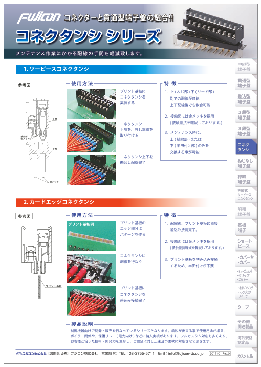 ◆端子側とコネクタ側の接続にプリント基板を利用しているため、誤配線を回避。◆コネクタは高性能なものを装着しているため、脱着が容易に行えます。また抜け防止機構が...