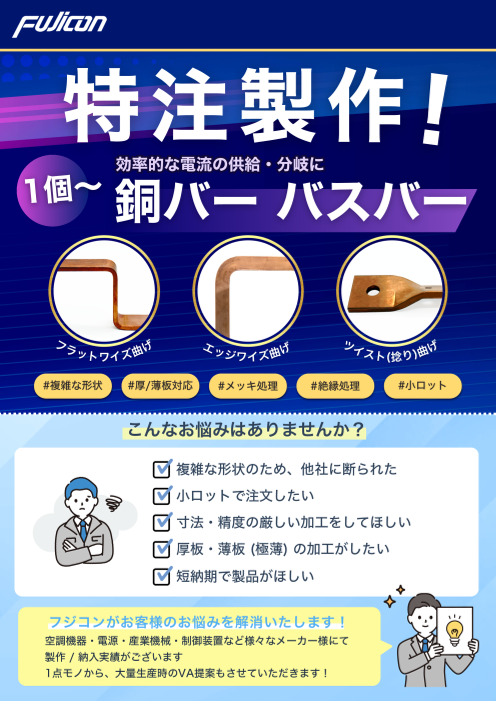 機構設計でバスバーが必要になった際、 既存取引先に依頼してみたものの… - 「銅材の加工実績が少なく、断られてしまった」 - 「メッキや絶縁処理は別の業者に依頼しな...