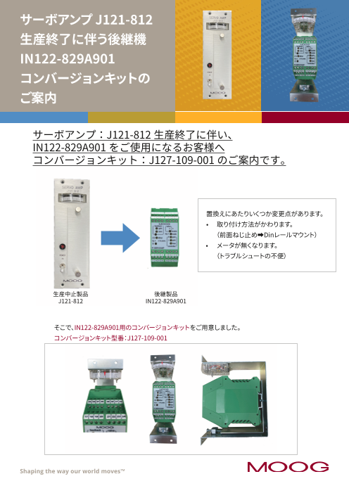 サーボアンプ:J121-812 生産終了に伴い、 IN122-829A901 をご使用になるお客様へ コ...