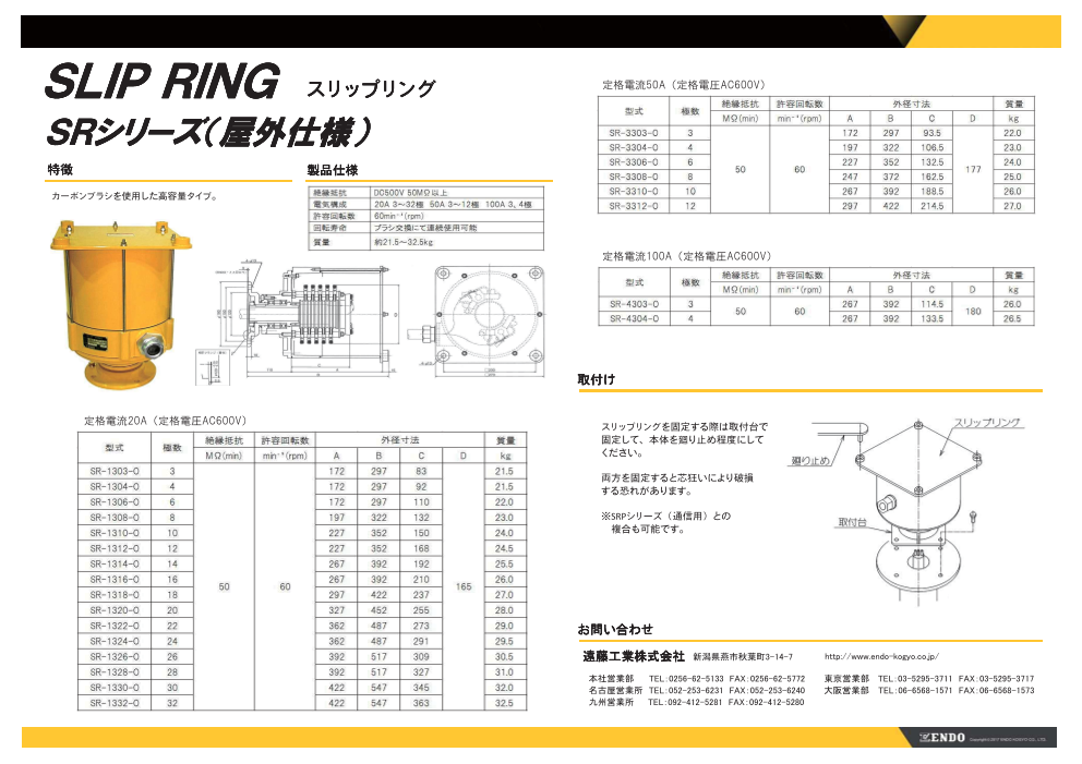 スリップリングとは、回転体に電力や電気信号を伝達するための回転コネクタです。ENDOは0.2Aの微電流から1200Aの大電流まで幅広くサポートする総合スリップリングメーカーです...