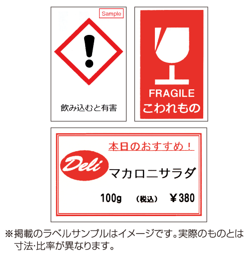 検体ラベル、荷札ラベル、宛名ラベル、食品表示ラベルなど