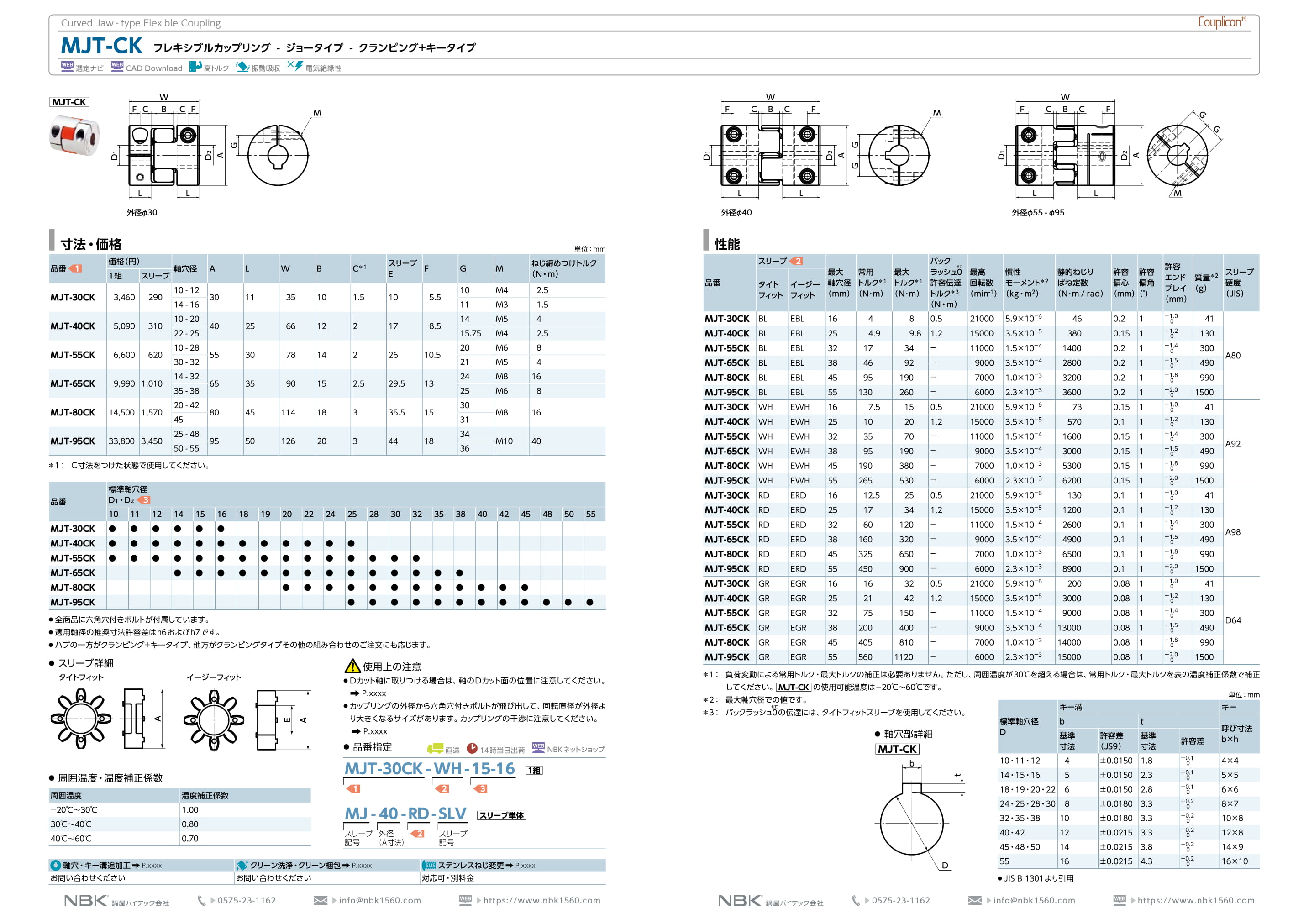 スリーブ硬度は4種類。トルク・ミスアライメントなど、ご使用条件に合わせて選定してください。