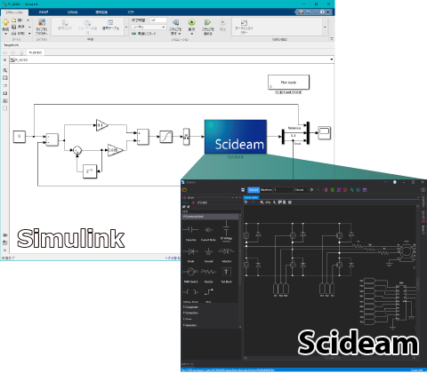 Simulink ®は制御モデルを、サイディームは回路モデルを担当し、