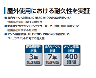 【屋外使用における耐久性を実証】
