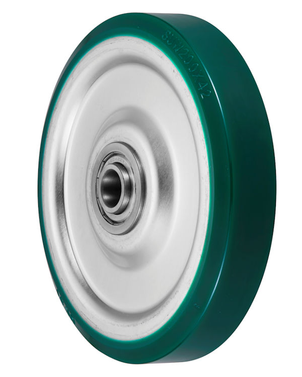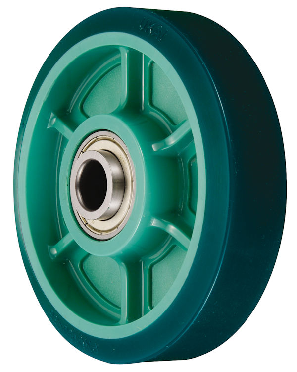 一般的なゴム車輪より、物性が良く、耐荷重性能、耐油性等に優れるウレタンゴムを採用…