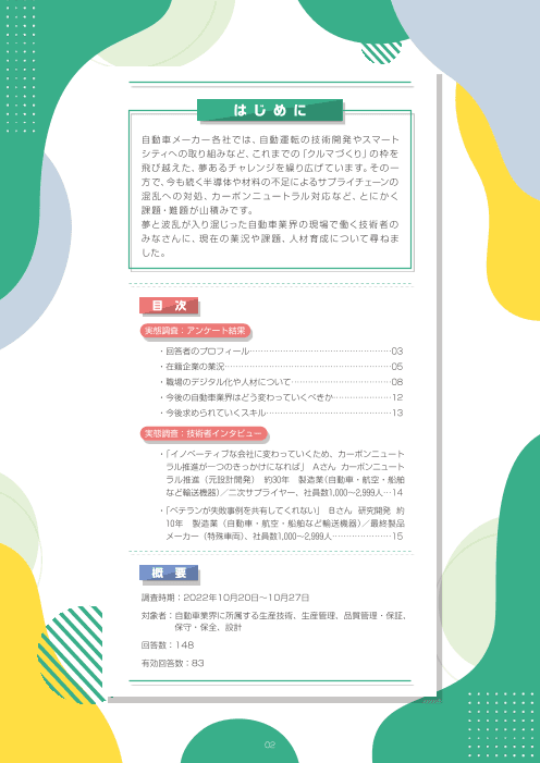 夢と波乱が入り混じった自動車業界の現場で働く技術者のみなさんに、現在の業況や課題、人材育成について尋ねました。